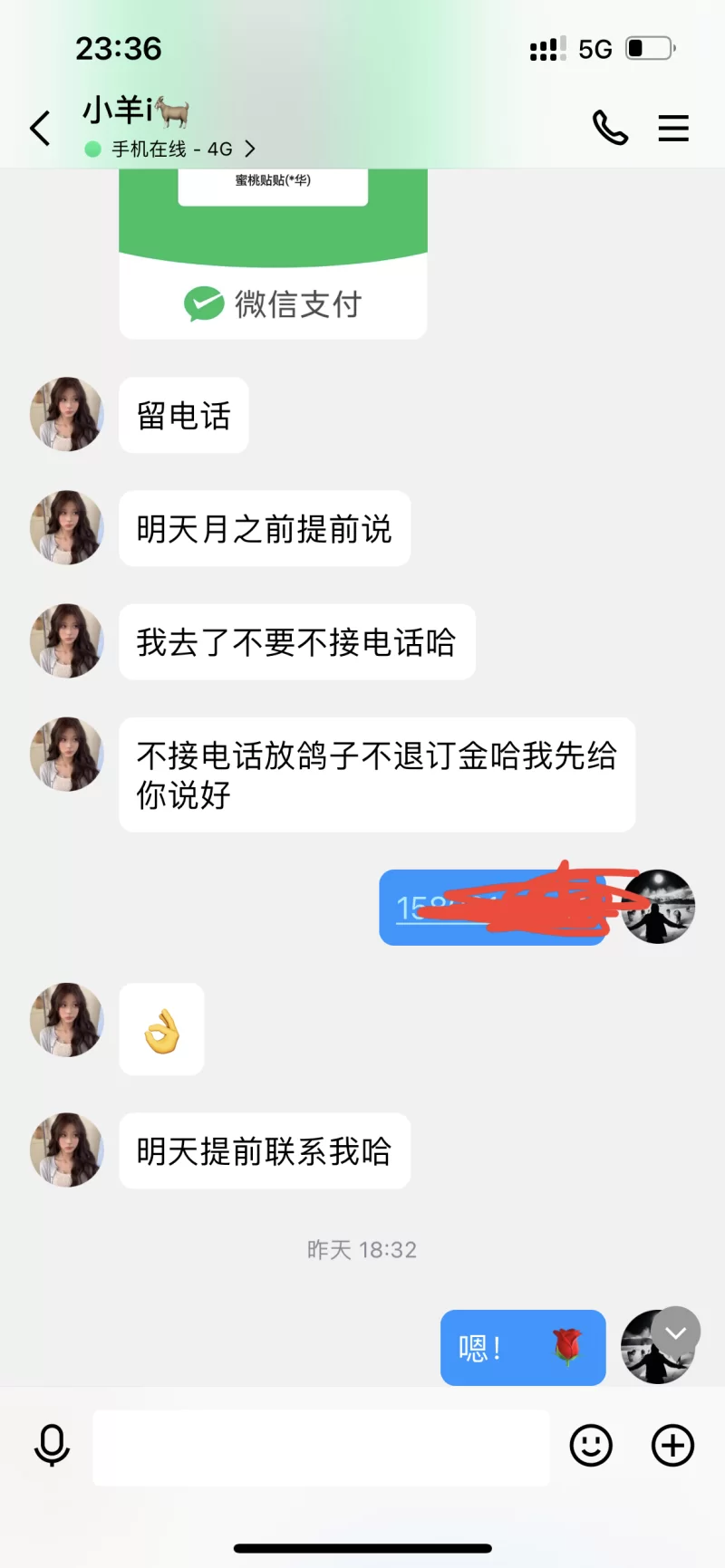 一个代聊骗子⋯⋯说自己接不到单让我找她,我说太远她说可以过来,找我要了定金,结果来的是个大妈不是本人,成都的兄弟们一定要注意⚠️ Qq多个7,要不然发不出去